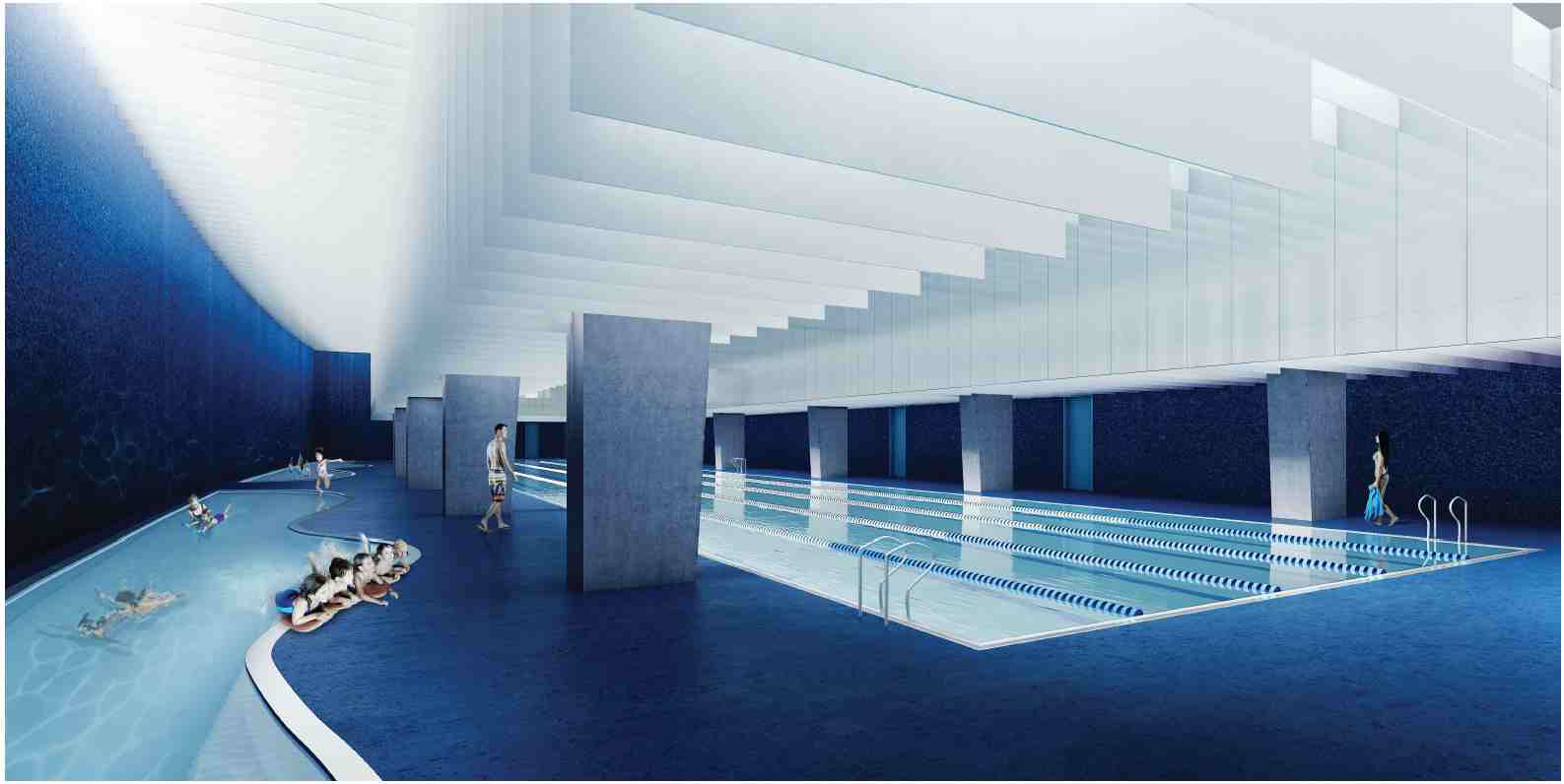 De momento, parece que sus instalaciones se centran principalmente en una piscina con distintos ambientes y posibilidades de realizar particiones, así como sauna y baño turco; en una sala de fitness, y; en un par de espacios polivalentes para actividades deportivas. Todos ellos estarán ubicados en los bajos del estadio y tendrán su entrada por la calle. Las últimas páginas del proyecto, que es muy extenso, contienen múltiples planos de todo tipo.