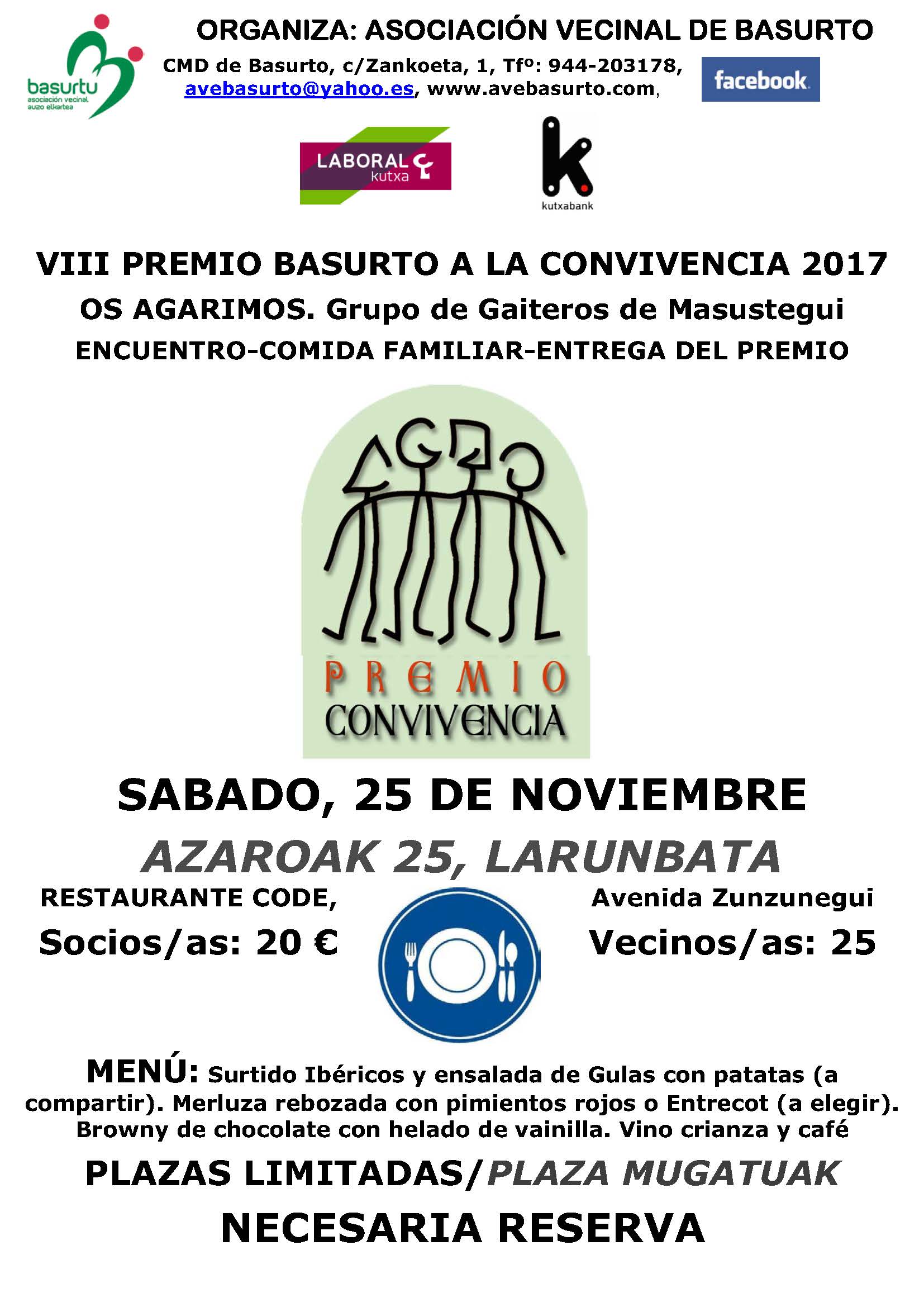OS AGARIMOS: PREMIO A LA CONVIVENCIA DE BASURTO, VIII EDICIÓN 2017