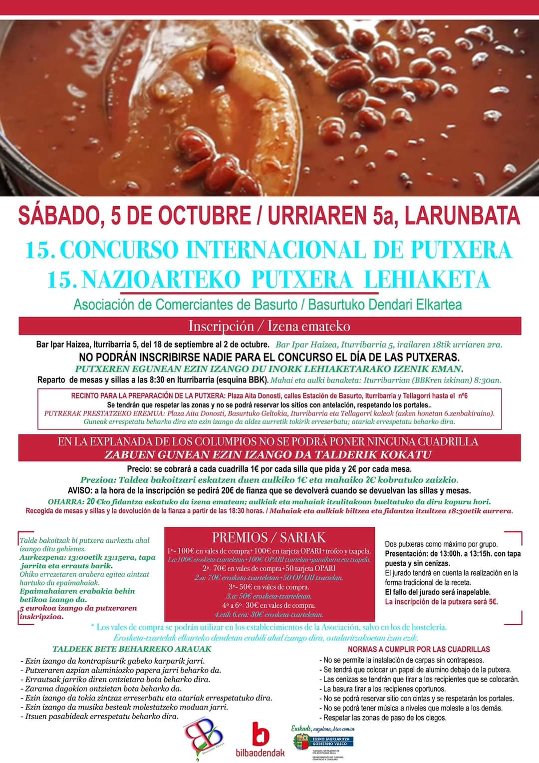 SOLICITUD DE PLAZA Del 4 al 10 de septiembre. En www.bilbao.eus, 944 010 010 (lunes a domingo, 08:00-20:00) SORTEO 12 de septiembre INSCRIPCIÓN Del 13 al 16 de septiembre. En www.bilbao.eus, 944 010 010 (lunes a domingo, 08:00-20:00) +INFO: 944 010 010 (lunes a domingo, 08:00-20:00), 944 204 395 / www.bilbao.eus Para crear un grupo: mínimo 6 participantes por centro y día. Ver las condiciones de participación en www.bilbao.eus |
